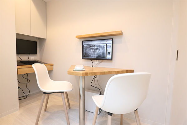 歯科治療において最も大切なことは患者様自身が、病気への理解を深め、現在の状態と今後起こりうる問題を把握することです。当院のカウンセリングルームは個室になっていますので、プライバシー面も安心していただけます。