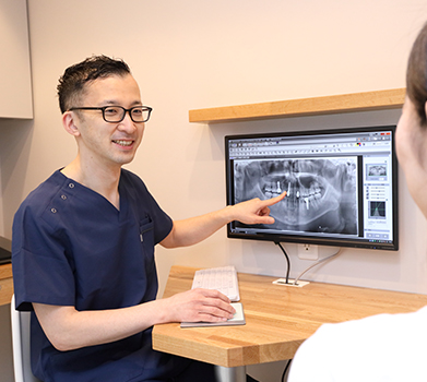 治療による効果を最大限にするには、患者様が病気の原因に対し、正しい理解をすることが必要であると考えています。特に歯周病は8割の方にみられる病気とも言われており、その多くは年齢とともに静かに進行し、最終的には歯を失う原因となります。